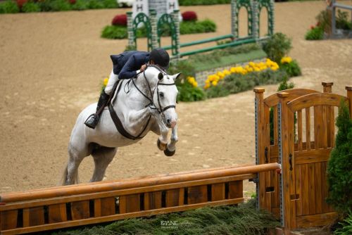 Kelly Sims’ Cannon Beach, a Danish Warmblood gelding guided by Michael Britt-León, claimed third-place honors. “He’s a wonderful horse. He comes to the ring the same every single day. He really tries hard.” In his first year, Cannon Beach was champion two weeks ago in Harrisburg, and that experience prepared him to rise to the occasion in the Alltech Arena, earning a score of 84.75 in the second round following an initial score of 89 in the first.